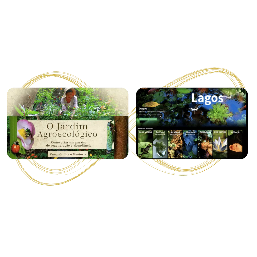 - 2 Cursos Completos com acesso vitalício Lagos e O Jardim Agroecológico.