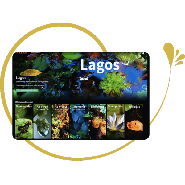 Crie jardins inspiradores e lagos biodiversos com suas próprias mãos e participe das mentorias ao vivo.